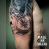 Tatuaje cover con el faro y la rosa de los vientos como elementos centrales, junto a otros elementos vinculados con el mar, una de las grandes aficiones que el cliente compartía con su padre.
